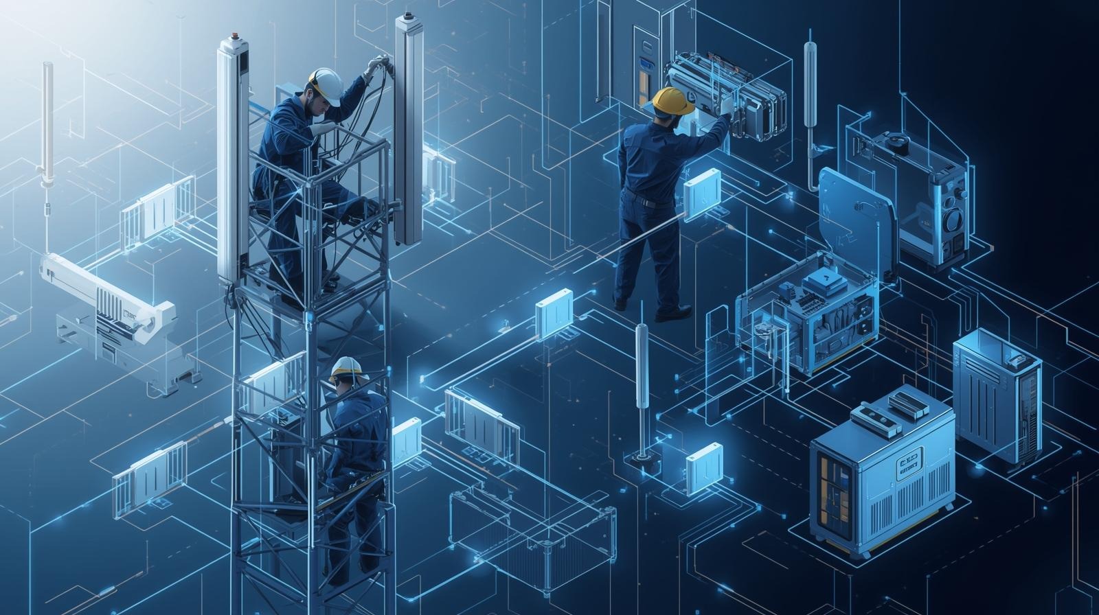 Services include equipment installation, antenna positioning, network configuration, and acceptance testing for last-mile connectivity.